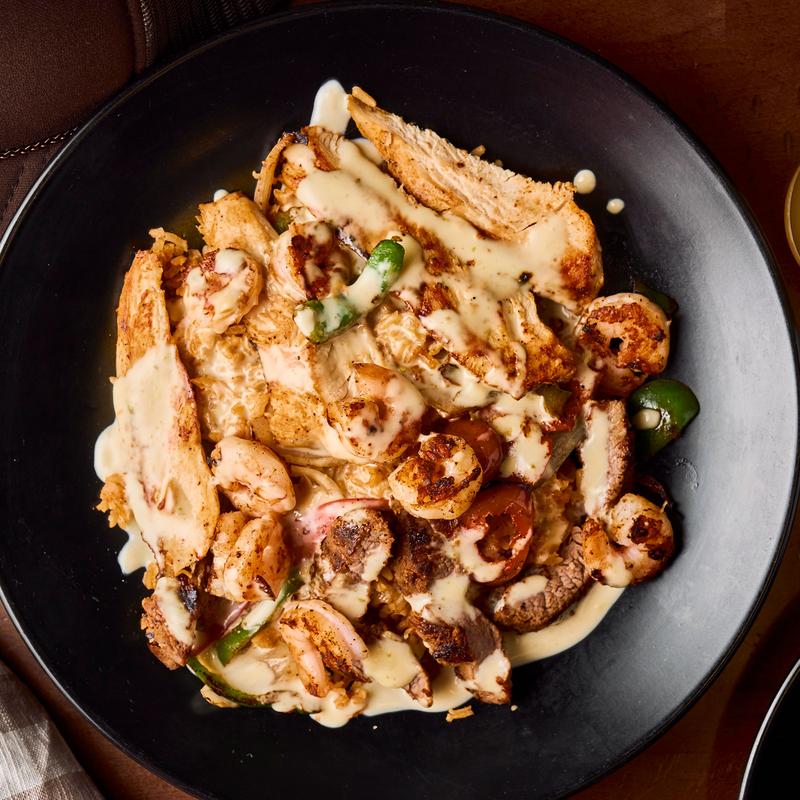 Hot skillet filled with peppers, onions, and choice of protein. Served with lettuce, pico, sour cream, guacamole & flour tortillas on the side.